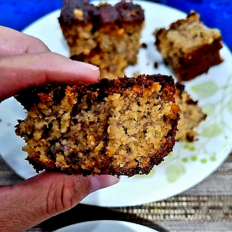 Sabroso queque elaborado con hojuelas de avena y platano natural, sin utilización de harinas de ningun tipo ni azúcar, suavemente endulzado .